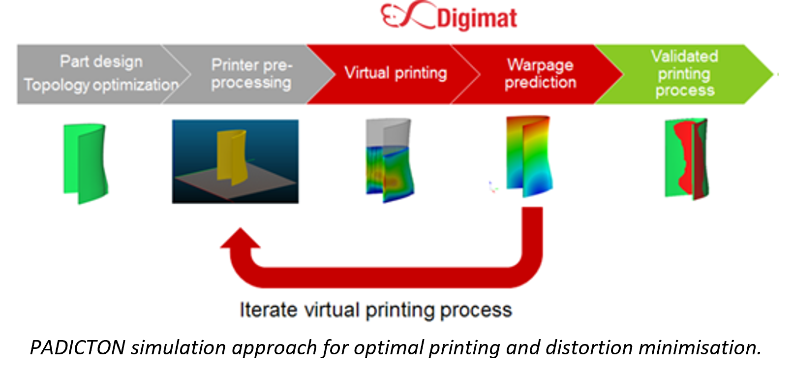 • PADICTON project has reached an important milestone as distortion prediction is being validated using simple geometry verification prints. Simple parts have been printed in Fused Filament Fabrication (FFF) and Selective Laser Sintering (SLS) and a high fidelity simulation methodology which has been developed is being used to predict and act upon expected deformations.